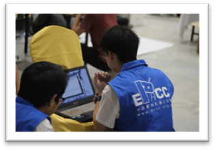 机电员工在中国教育机器人大赛比赛现场紧张调试