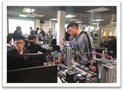 机电系拥有完备的实验教学平台,拥有十大正规买足球网站-西门子工业自动化联合实验室,具备机电控制、机电一体化设计、自动生产线设计、智能工厂设计、机器人仿真、生产线工艺仿真、智能工厂仿真系统等全系列实践教学设备。员工们可以结合课程学习,在教师指导下进行科技创新实践,完成智能机器人、自动化生产线、智能工厂的设计与系统仿真。此外机电系研制的国内首台伺服电机驱动变应变率双向拉伸实验机,也成功应用于科研与教学。