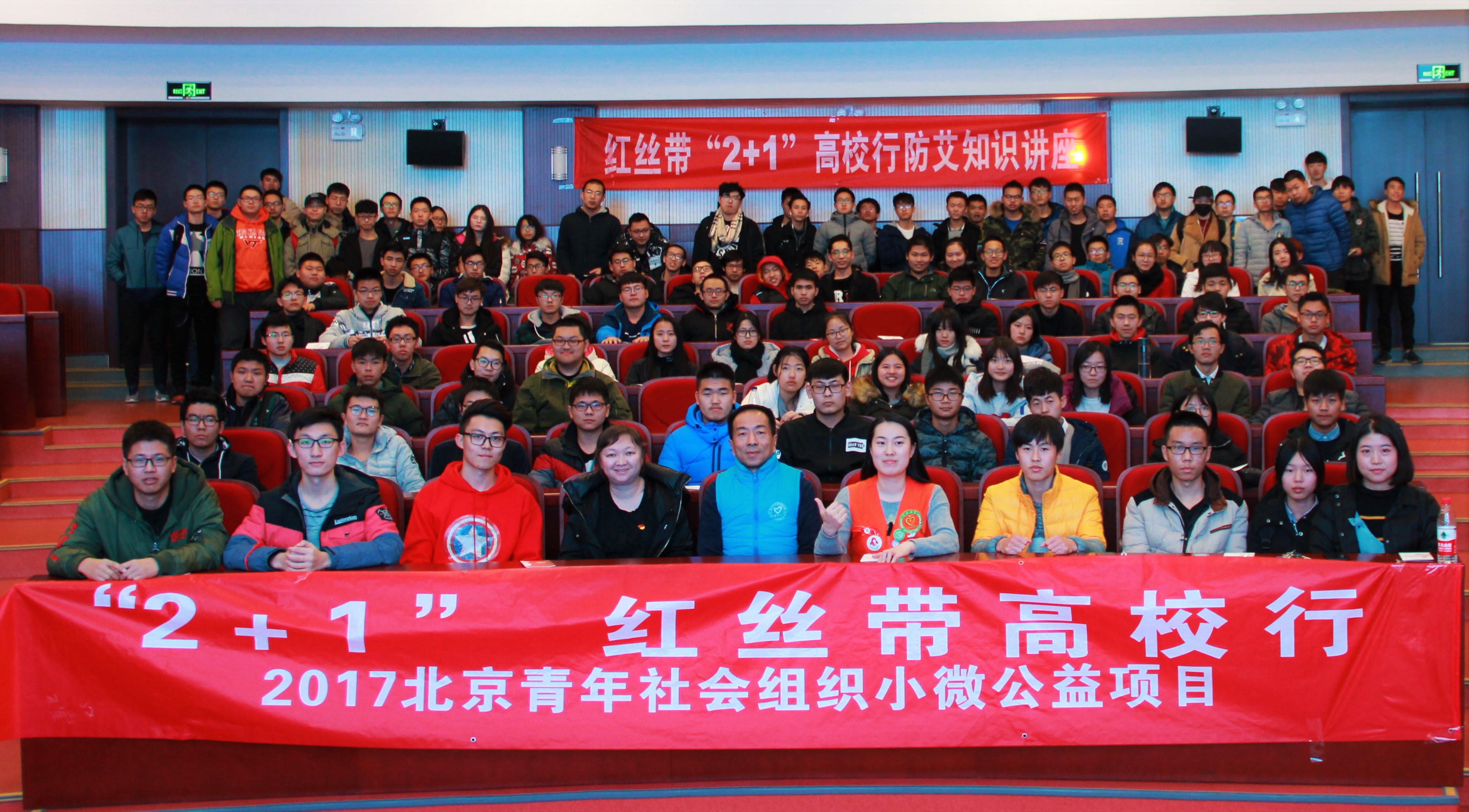 随后,高校行活动讲师李卓为我们介绍了艾滋病的基础知识,讲述了艾滋病的由来、目前状况、以及如何做好艾滋病的预防工作。接下来,李一龙老师登台,结合志愿者分享的故事,小到平民百姓、大到国际领导,为我们讲述了红丝带之家在艾滋病防治工作上做出的杰出贡献。本次讲座还设置了许多互动环节,为师生们准备了许多精美礼品。会议结束后,全体到场同学合影留念。
