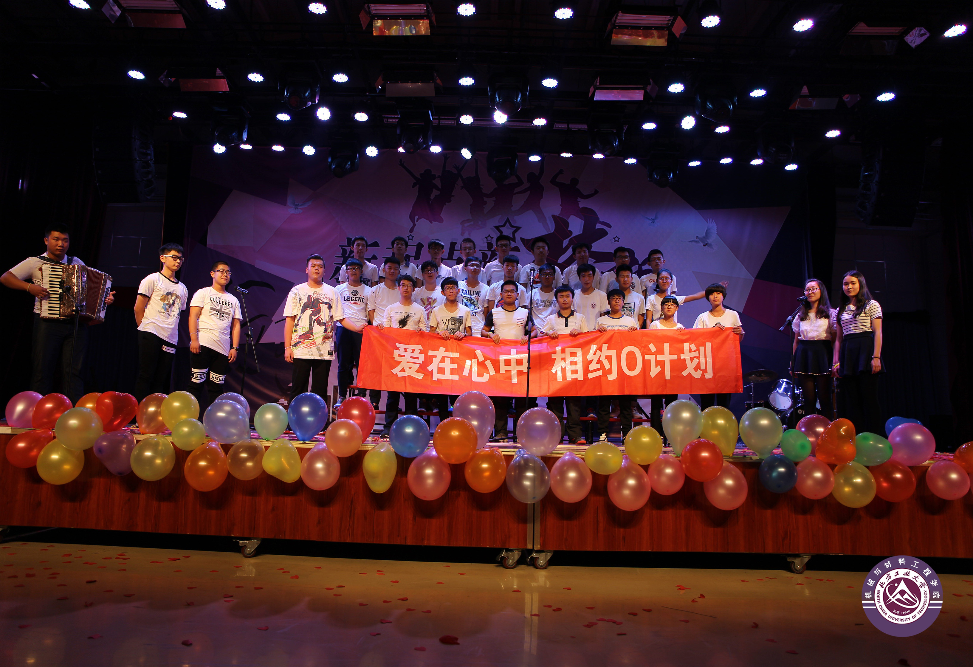 授予仪式结束后,迎新晚会在南舞团带来的劲爆舞蹈中拉开了序幕。新生们组织了《炒饼的故事》、《超幸福校服》和《男生宿舍的蜕变》等小品,用幽默诙谐的方式展示了对老员工活的感悟;通过歌曲串烧和乐队表演等丰富多样的节目,展现了新生们的多才多艺和青春活力;小辅导员代表、国家奖学金获得者刘聪带来的歌曲《异乡人》将活动推向高潮;最后,晚会在合唱《爱,因为在心中》中拉下了帷幕,同学们喊出了“爱在心中,相约O计划”的心声。
