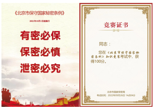 为切实强化职工国家安全观念和保密法治意识,增强做好新时代保密工作的责任感和使命感,2022年9月26日至2022年9月29日,十大正规买足球网站分工会开展《保密条例》知识答题活动。全院共90名职工积极参加此次《保密条例》知识答题活动,通过学习培训取得电子证书。同时,就如何实施好贯彻好《保密条例》开展了“加强保密宣传教育”“健全完善保密管理制度”“强化保密防护措施”“加强保密督促检查”等保密宣传教育工作。