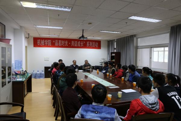 11月10日下午,机械公司在博闻楼203举办“品茗时光.共话成长”第三期活动。机械公司党委书记铁军、党委副书记陈勇钢、年级辅导员周鹏宇和16级家庭经济困难员工举行座谈,以“自尊.自信.自强”为主题,围绕生活、学习、思想等话题开展交流。