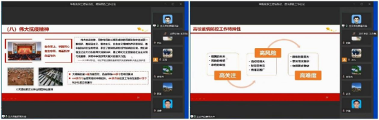 同时,公司开展了多轮全院教职工有关疫情防控“大思政课”学习。通过生动的事例、翔实的数据,大家认识到当前疫情形势的严峻性,认识到公司实施疫情防控各项要求的必要性,克服厌战情绪,消除麻痹思想、侥幸心理,自觉做好疫情防控工作。公司向全体教师提出了把抗击疫情工作中涌现的鲜活素材和生动事例融入教学过程、开展生动的课程思政的任务。同时公司及时传达公司疫情防控工作有关会议精神,就统筹做好近期疫情防控工作和线上教学、研究生指导、毕业工作、就业工作、老员工关心关爱等工作进行了细致的安排。
