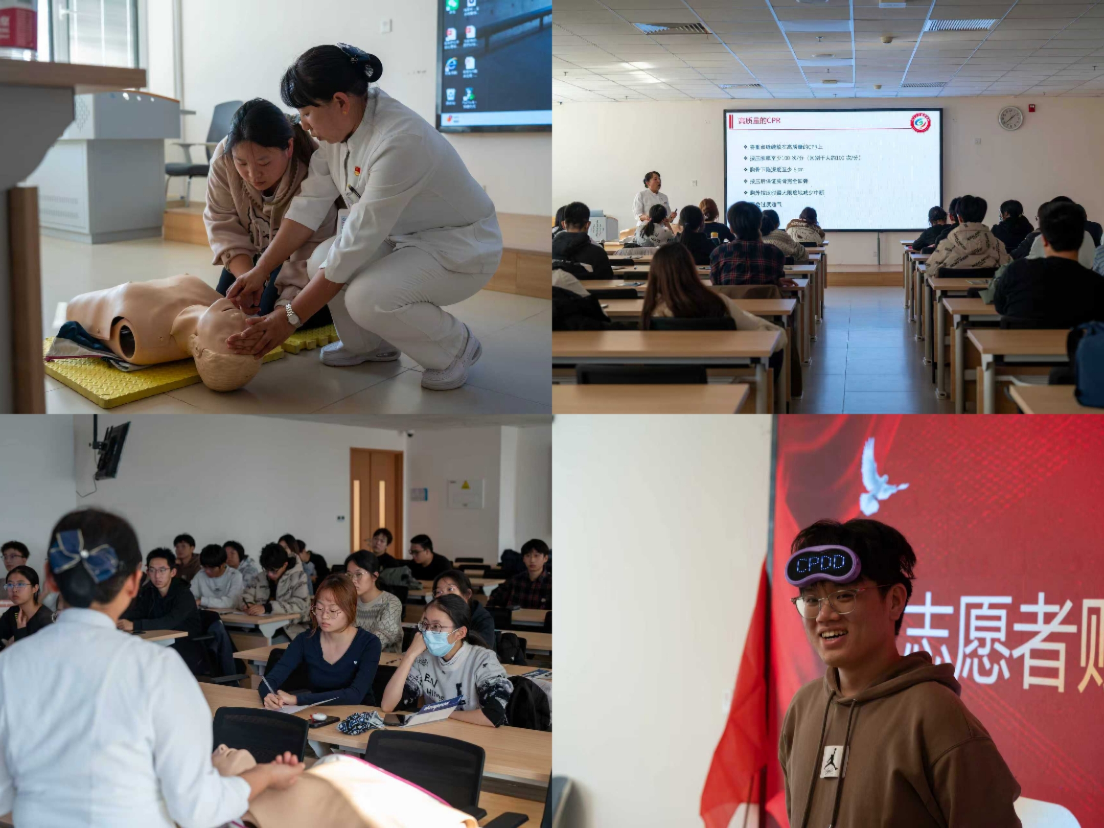 活动过程中,医护人员系统讲解了心肺复苏的基本知识、操作步骤和注意事项,重点强调了“黄金四分钟”对于成功挽救心搏骤停患者的生命至关重要。借助模拟人教具,医护人员逐步演示了判断意识、呼救求助、胸外按压、开放气道、人工呼吸等环节的操作要领和规范流程。在场员工认真聆听、积极互动,表现出高度的学习热情和责任意识。在实操练习环节,同学们进行了模拟训练,医护人员逐一指导,及时纠正操作中的细节错误,确保同学们能基本掌握操作技能。志愿者同学们纷纷表示,通过这次培训不仅学会了急救技能,更加深了对“生命至上、安全第一”理念的理解。