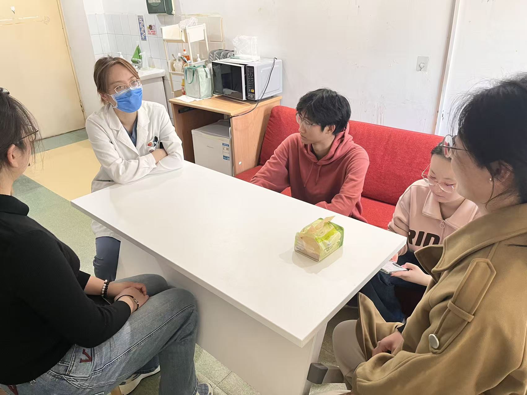 与呼吸危重科医生的访谈,则让同学们触摸到了医者白大褂下的温度与担当。医生始终以温和语气耐心回应每一个问题,这份坚守令人肃然起敬。谈及从医初心,她眼中泛起微光:“高中时便向往医学,医生与教师皆是世间神圣的职业,既能救死扶伤,也能为家人健康多一份守护。”