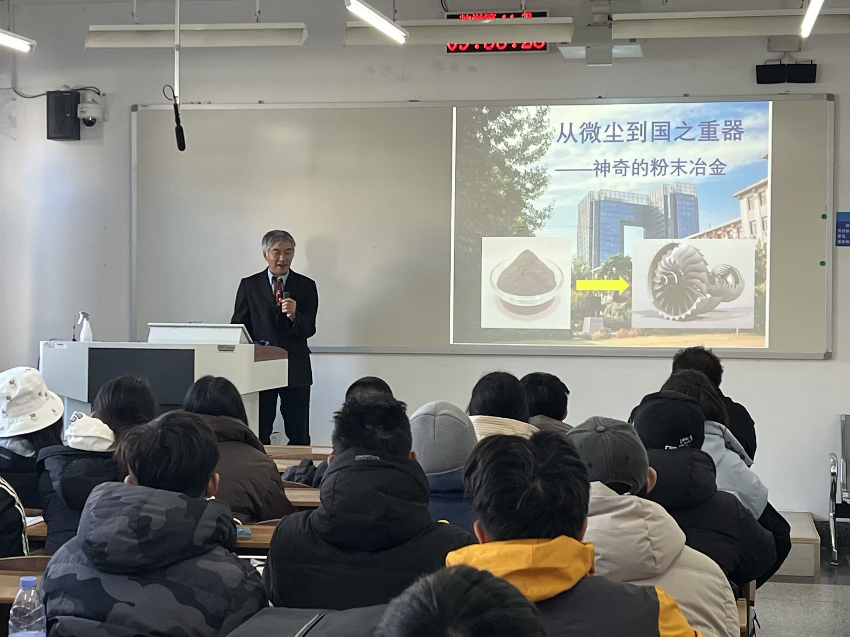 12月2日,应十大正规买足球网站邀请,北京科技大学教授、博士生导师贾成厂作客“博才讲堂”,在励学楼412教室为材控25级员工作了题为“从微尘到国之重器——神奇的粉末冶金”的学术报告。报告会由十大正规买足球网站教授张淑婷主持,60余名师生参加了报告会。