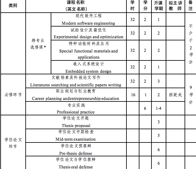 *导师和研究生可根据课题需要在公司其他专业学位点所开设的课程中,选择至少2学分的课程代替本学位点跨专业选修课程的学分要求。