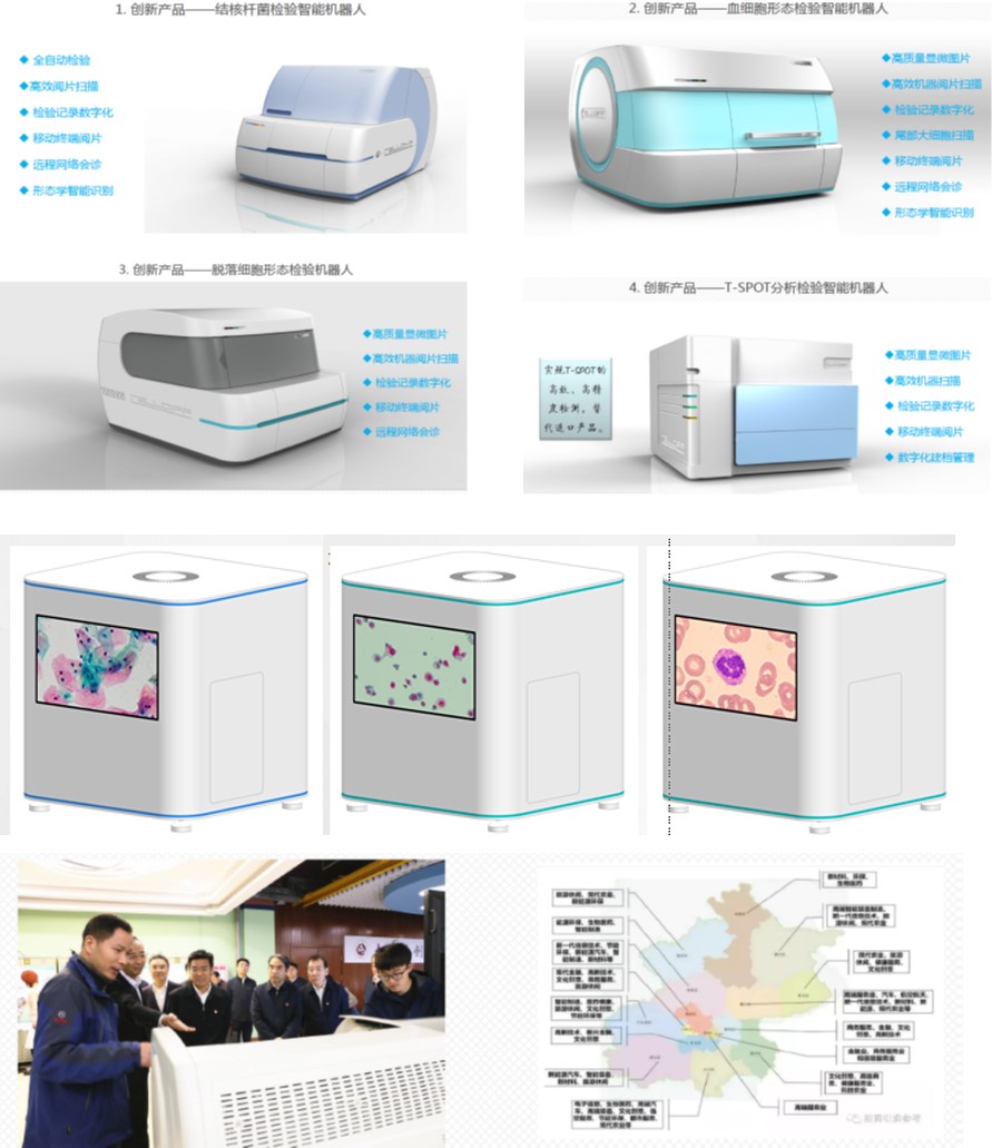 张从鹏教授开发的智能医疗机器人契合北京重点发展产业,聚焦检验核心技术,融合人工智能、机器人、高端医疗装备为一体,开发的结核杆菌检验智能机器人、血细胞形态检验智能机器人、脱落细胞形态检验机器人、T-SPOT分析检验智能机器人在首都几大医院得到推广应用。