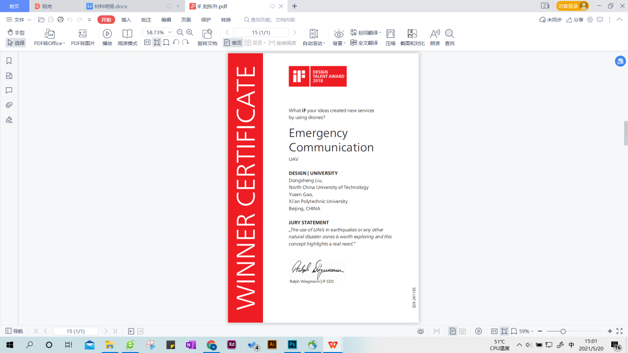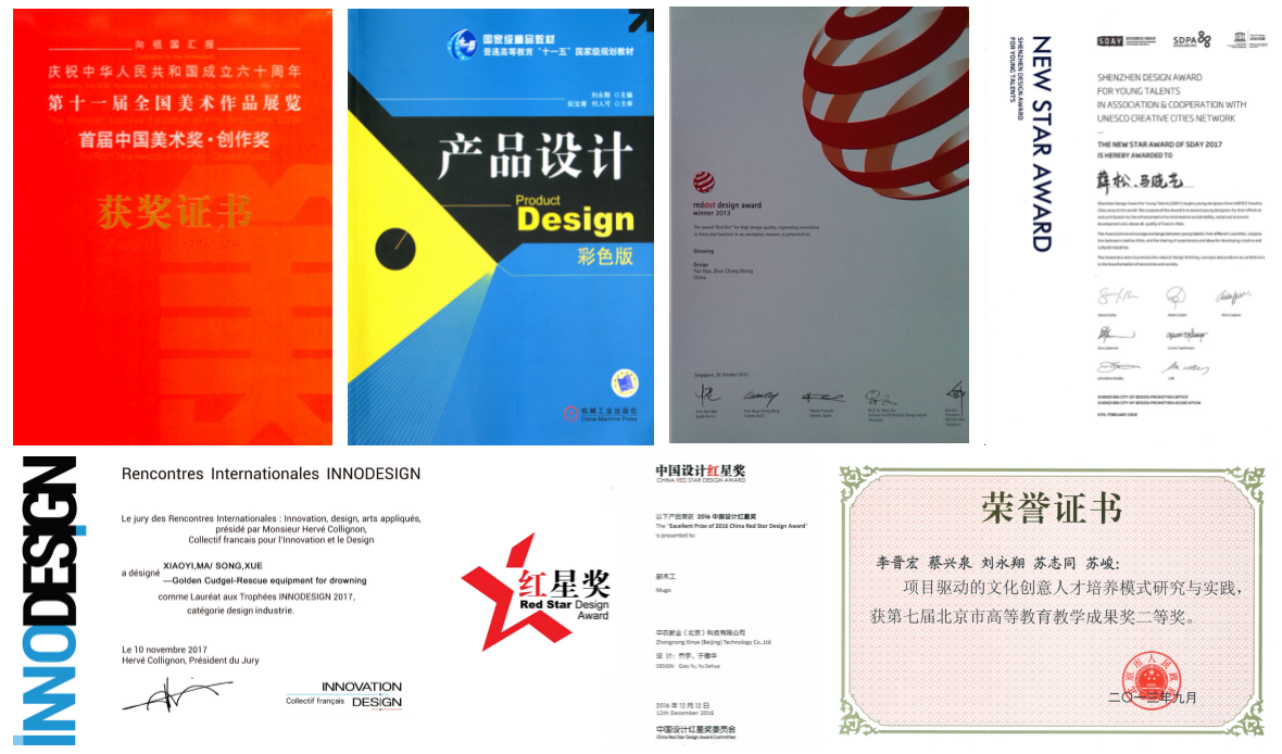 代表成果:中国旅游商品创意设计大赛、全国老员工工业设计大赛、中国设计红星奖等。